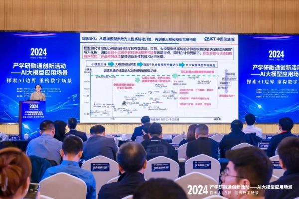 ICC訊 9月27日,以“探索AI邊界重構(gòu)數(shù)字場(chǎng)景”為主題2024產(chǎn)學(xué)研融通創(chuàng)新活動(dòng)在北京正式召開(kāi),26位演講嘉賓齊聚,共話生成式人工智能的關(guān)鍵技術(shù)與應(yīng)用趨勢(shì),共探AI大模型在7大領(lǐng)域的應(yīng)用落地。中國(guó)信通院人工智能研究所軟硬件與生態(tài)部主任李論發(fā)表了《大模型應(yīng)用落地趨勢(shì)與路徑》主題演講,在詳述大模型的范式變遷與模型演進(jìn)的同時(shí),強(qiáng)調(diào)了底座支撐作用。她指出,模型的原始創(chuàng)新與大模型訓(xùn)推系統(tǒng)深度耦合,大模型落地時(shí),計(jì)算能力決定了大模型性能天花板。