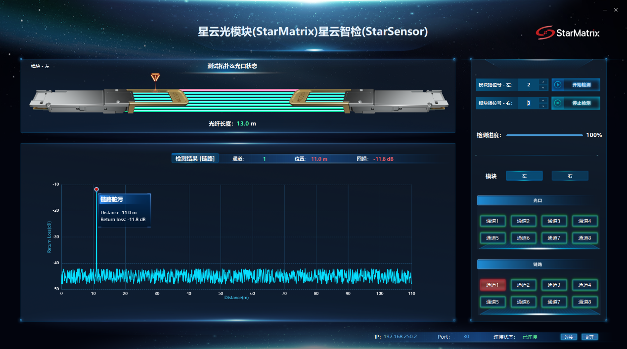 隨著智算網(wǎng)絡(luò)規(guī)模的持續(xù)擴(kuò)容,光鏈路數(shù)量呈爆發(fā)式增長(zhǎng),傳統(tǒng)人工排障模式已難以匹配高效運(yùn)維需求。海思光電立足二十余年光電技術(shù)積淀,通過系統(tǒng)性技術(shù)重構(gòu)打造出適配智算網(wǎng)絡(luò)的StarMatrix 星云光互聯(lián)解決方案,其獨(dú)家搭載的星云智檢 StarSensor 功能,以分鐘級(jí)檢測(cè)、厘米級(jí)定位的核心優(yōu)勢(shì),有效消除 AI 訓(xùn)練開局隱患,為智算中心的長(zhǎng)穩(wěn)運(yùn)行提供可靠保障。