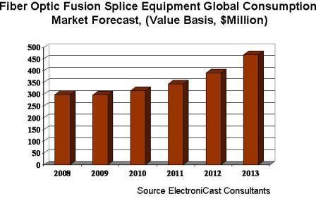2009年5月5日——來自市場調(diào)查機(jī)構(gòu)ElectroniCast的一份最新研究報(bào)告顯示,2008年全球光纖熔接機(jī)市場產(chǎn)值為3億美元,比2007年的3.08億美元下降一些。不過,ElectroniCast預(yù)測到2013年全球光纖熔接機(jī)市場產(chǎn)值有望增至4.70億美元,銷量的大增主要原因是光纖熔接機(jī)平均銷售價(jià)格的持續(xù)下滑。