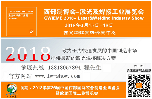2018西部制博會(huì)-激光及焊接工業(yè)展覽會(huì)即將于2018年3月15日—18日在西安曲江會(huì)展中心舉行,規(guī)劃總展出面積8萬(wàn)平方米,總展位近4000個(gè)。