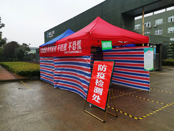 闊別半月有余,員工們重返崗位的第一天,要在這頂帳篷里經(jīng)歷四道關(guān)卡:量體溫、全身消毒、更換新口罩、登記相關(guān)信息。隨后,安全通過檢測的市內(nèi)員工可以提前回到工作崗位,外地員工則將安排到專門的宿舍度過隔離期。