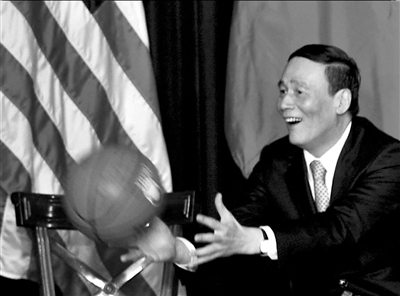 華盛頓時(shí)間7月28日,奧巴馬送給王岐山一個(gè)籃球,王岐山不忘秀一秀球技