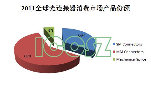2011年,與多模光纖配套使用的光纖連接器占據(jù)全球光纖連接器消費(fèi)市場(chǎng)的60%;其次是單模光纖連接器,占比為34%;最后機(jī)械接續(xù)頭占6%。機(jī)械接續(xù)頭消費(fèi)市場(chǎng)預(yù)計(jì)也將繼續(xù)增長。適用于光纖到戶安裝,基于機(jī)械拼接技術(shù)的現(xiàn)場(chǎng)安裝連接器應(yīng)用急劇增長。