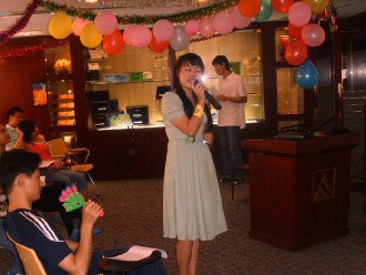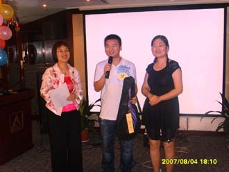 恒寶通石紅紅有“小宋祖英”之稱,一曲《好日子》把全場氣氛推到一個新的高潮。那甜美的歌聲一點都不遜色于宋祖英,最終獲得比賽的第二名。同樣來自恒寶通的劉禮程以一曲周杰倫《簡單愛》最終贏得了最具偶像氣質(zhì)獎,他高超的演唱水準(zhǔn)和帥氣的裝扮轟動了全場。天陽谷的項目經(jīng)理王莉演唱的是日本名歌《北國之春》,盡管屏幕顯示的是中文字幕,可她演唱全部是用日語完成,還原了歌曲的原汁原味,有本次活動的“才女之稱”,我們不僅感嘆光通訊真是人才濟濟。