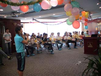 8月4日(周六)下午三點,訊石多功能會議廳內(nèi)熱鬧非凡。為了豐富光通訊行業(yè)人士的娛樂生活,為了服務(wù)會員,為了進一步促進大家的了解和溝通,同時也給會員公司及行業(yè)人士提供一個展現(xiàn)自我的舞臺,訊石決定將八月光通訊業(yè)聯(lián)誼會舉辦成一場卡拉OK的比賽。本次活動是以“你是光你是電,你是我們的Superstar” 為引題的“光電杯”卡拉OK比賽。本次參賽訊石會員公司報名都非常積極,共有17名選手參加。而到會的觀眾也創(chuàng)了訊石活動之最約六十人,現(xiàn)場氣氛非?;鸨?。本次活動訊石設(shè)置了一等獎、二等獎以及最具親和力、最具個性獎、最佳臺風(fēng)等六個并列獎項,獎品由訊石和騰天科技贊助提供。