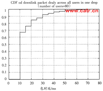 圖2所示即為VoIP業(yè)務(wù)模型下的用戶端到端傳輸時延的CDF曲線。