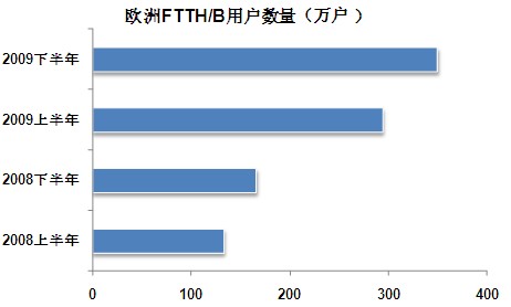 2009年歐洲的光線到戶和到樓(FTTH/B)服務增長速度顯著加快。據全球知名市場咨詢機構Idate為歐洲FTTH協(xié)會所做的一份報告顯示,2009年下半年FTTH/B的用戶增長了19%,截至2009年12月,F(xiàn)TTH/B的用戶達到了350萬,并且所經的家庭和大樓總數增長了29%,達到了2500萬。