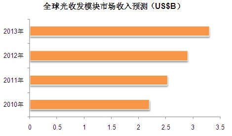 【訊石光通訊咨詢網(wǎng)編譯】LightCounting最新市場報告預(yù)計,2010年全球光收發(fā)器市場銷售額將達22億美元,該市場2009年至2013年間年復(fù)合增長率為15%,主要受寬帶市場日益增長的影響。