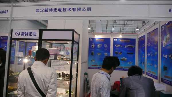 武漢元?jiǎng)?chuàng)光電科技展臺(tái)合影,據(jù)公司副總經(jīng)理鄭總介紹公司2004年成立至今,光模塊生產(chǎn)已頗具規(guī)模。