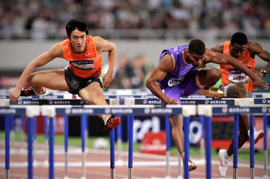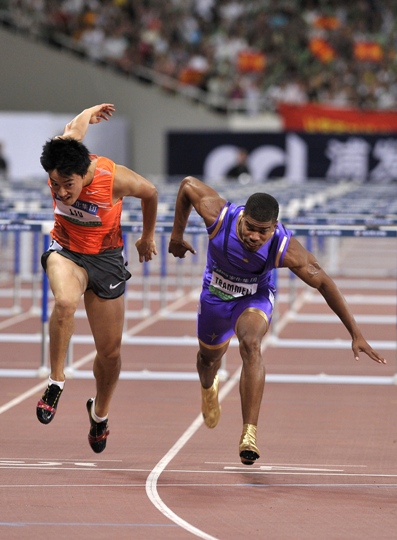 劉翔與特拉梅爾同時沖線,屈居亞軍