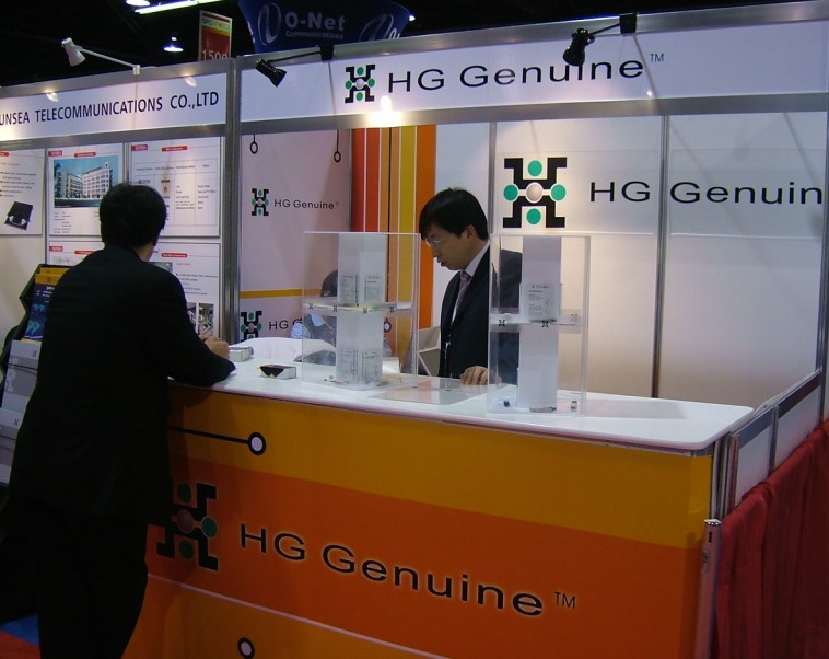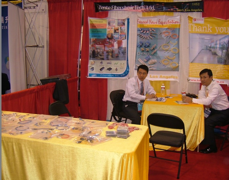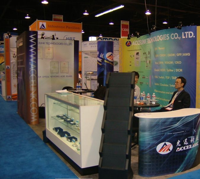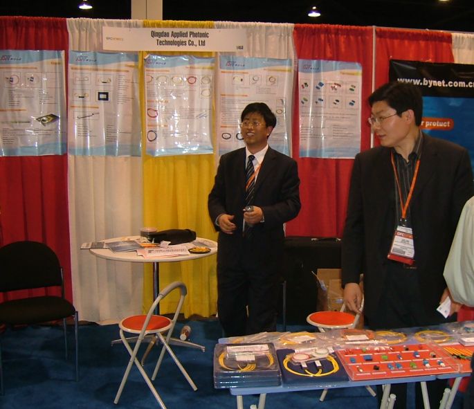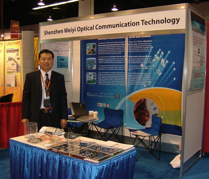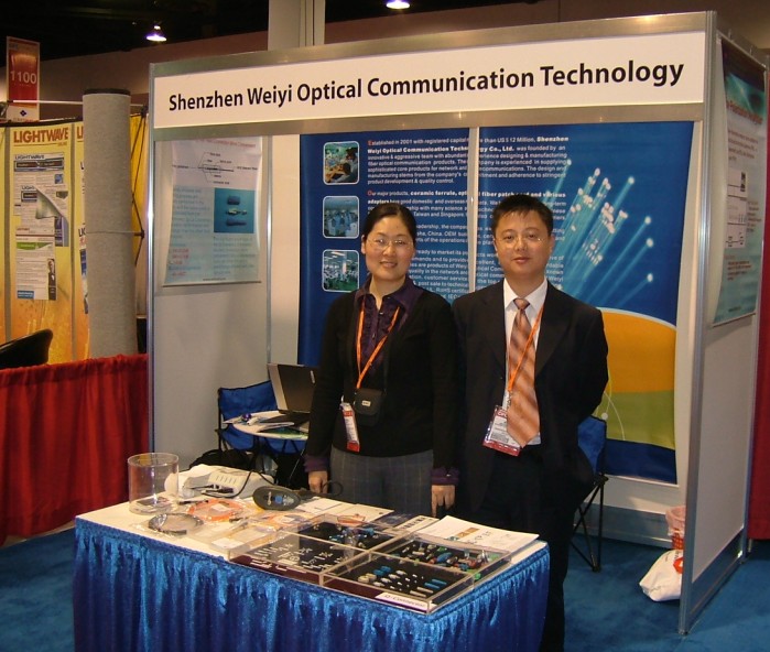 訊石王經(jīng)理與威誼劉博士在展臺前留影 深圳光纖城通訊有限公司展臺