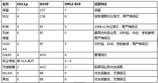這種方案,QOS規(guī)劃主要解決無線系統(tǒng)的QOS標(biāo)記和網(wǎng)絡(luò)QOS標(biāo)記相互映射的問題,具體的映射機(jī)制,如下所示: