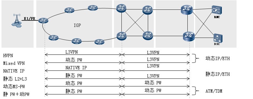 前面提到,由于EPC部署在省中心機(jī)房,在LTE階段,承載網(wǎng)面臨跨本地網(wǎng)和省干的需求;同時(shí),跨域?qū)>€的需求也很常見。但是,由于存在多種跨域技術(shù),如何選擇和規(guī)劃,是LTE承載網(wǎng)需要仔細(xì)分析和考慮的。