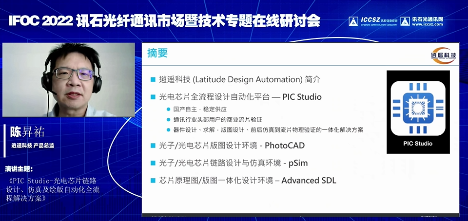 ICC訊 2022年12月28日,在訊石在線研討會(huì)上,深圳逍遙科技有限公司(以下簡稱:逍遙科技)的CTO陳昇祐博士發(fā)表關(guān)于《光電芯片鏈路設(shè)計(jì)、仿真及版圖自動(dòng)化全流程解決方案》的主題演講。