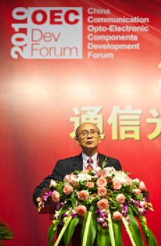 中國光學學會會長、中國科學院院士周炳錕在論壇開始進行致辭,他表示,自2000年全球IT產(chǎn)業(yè)調(diào)整以來,我國已成為全球通信光器件產(chǎn)業(yè)一個重要基地。到2009年底,我國通信光器件占全球市場份額約為五分之一,正成為全球光器件產(chǎn)業(yè)中最為活躍的市場。周炳錕認為,隨著3G、FTTH部署、高速光傳送、光接入等技術(shù)與市場的發(fā)展,通信光電子器件正成為驅(qū)動通信市場增長的又一關(guān)鍵因素。由于光通信技術(shù)正朝集成化、智能化的方向發(fā)展,這對光器件的小型化、低成本、低功耗提出了更高要求。