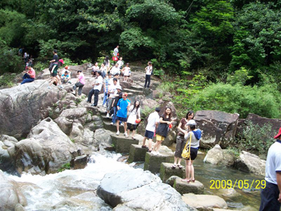 旅游的第一天,公司特意安排競技性強的爬山運動,我們面對的是主峰天堂頂9999個超想像力臺階的白水寨。白水寨圍繞白水仙瀑及奇峰秀色,總長6.6公里,19000多步,橫跨三座高山,連接二大天池,號稱“天南第一梯”。登山過程中,盡情享受身邊的風(fēng)景。安靜平和,山、石、水、樹,結(jié)合在一起,滿目青山,悠悠綠水,清新的氣息,風(fēng)光旖旎,令人感動!