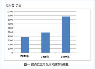 進(jìn)入2009年以來(lái),在國(guó)內(nèi)3G建設(shè)和FTTX規(guī)模建設(shè)的拉動(dòng)下,國(guó)內(nèi)光纖光纜行業(yè)迎來(lái)了需求量旺盛期。從近三年的數(shù)據(jù)來(lái)看,目前國(guó)內(nèi)光纖光纜市場(chǎng)用量已達(dá)歷史新高,光纖拉絲及光纜生產(chǎn)水平及產(chǎn)能已經(jīng)十分成熟并且進(jìn)入規(guī)模化生產(chǎn)。光纖光纜產(chǎn)業(yè)鏈中,存在的薄弱環(huán)節(jié)為:光纖預(yù)制棒產(chǎn)品仍需大量進(jìn)口。