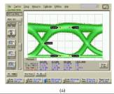 SOA-MZI是通過(guò)InP材料裝配在一起的,為了實(shí)現(xiàn)對(duì)偏振不敏感的XPM,這些SOA的有源材料要由混合應(yīng)變量子阱或應(yīng)變大塊材料(bulk material)任一組成,為的是平衡TE和TM光增益。材料在非平面表面的再生長(zhǎng)來(lái)用于實(shí)現(xiàn)SOA和無(wú)源光波導(dǎo)之間的平滑轉(zhuǎn)變。在SOA-MZI設(shè)計(jì)方案中,一個(gè)需要考慮的重要事項(xiàng)是要對(duì)SOA-MZI芯片中的發(fā)射激光(lasing)進(jìn)行有效抑制。為了支持2R再生器所需的功率預(yù)算,可能會(huì)將3個(gè)SOA級(jí)聯(lián)在一起。任何來(lái)自刻面的反射都可能導(dǎo)致內(nèi)部的lasing,這些lasing會(huì)抑制SOA-MZI內(nèi)部的XPM效應(yīng)。要解決這個(gè)問(wèn)題就需要在InP刻面采用有角度波導(dǎo),并鍍上一層防放射膜,可以將總的發(fā)射率降低到-50dB以下。而XPM所支持的數(shù)據(jù)速率也受到SOA載波恢復(fù)時(shí)間的限制。圖3顯示了兩種不同結(jié)構(gòu)的SOA-MZI在對(duì)10Gbps速率信號(hào)處理完的輸出眼圖。在圖3a中,緩慢的載波恢復(fù)的影響呈現(xiàn)在脈沖下降時(shí)間上。在圖3b中,通過(guò)在干涉儀中使用更長(zhǎng)的SOA則減輕了這種影響,加上的SOA在對(duì)有源區(qū)的折射率進(jìn)行相同改變后會(huì)產(chǎn)生了更大的相位位移。而干涉臂上的SOA所產(chǎn)生的自飽和效應(yīng)也會(huì)限制所有處理信號(hào)的速率。然而,如果SOA -MZI兩個(gè)輸入臂上的固定時(shí)間延遲等于脈沖寬度的話,那可處理信號(hào)的速率將可以很高,我們已經(jīng)看到人們對(duì)40Gbps數(shù)據(jù)進(jìn)行再生處理的報(bào)道了[7]。