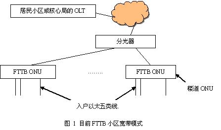 目前,各運營商部署的基于PON 的小區(qū)寬帶,多采用下圖1的模式,即FTTB。該模式采用5類線入戶。弊端很多: