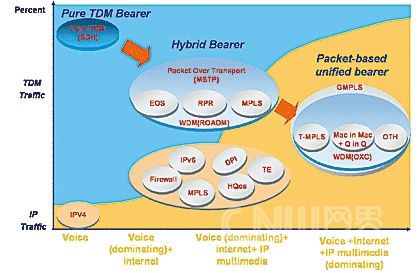 近年來,通信行業(yè)中數(shù)據(jù)業(yè)務(wù)迅猛發(fā)展,業(yè)務(wù)IP化已成大勢所趨,數(shù)據(jù)多媒體業(yè)務(wù)尤其是語音、視頻IP化取得了重大進(jìn)展,導(dǎo)致了傳輸網(wǎng)承載信號(hào)從TDM到IP的逐漸轉(zhuǎn)變。