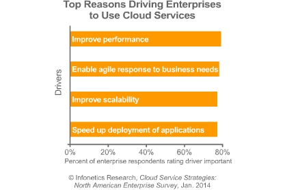 *在Infonetics的企業(yè)受訪者中,頂部驅(qū)動程序采用云計算的性能可實現(xiàn)靈活性、可擴展性,并可降低成本;