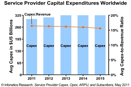 【訊石光通訊咨詢網(wǎng)】近期,Infonetics公布最新的“服務(wù)供應(yīng)商資本開支、營運(yùn)開支、ARPU和用戶”報(bào)告。