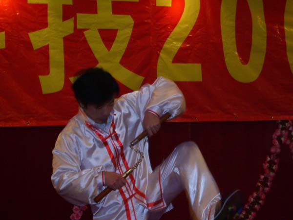 雙節(jié)棍表演 開(kāi)始的雙節(jié)棍怎么變成了火腿腸?演員們還會(huì)幽默一把,表演者的創(chuàng)新意識(shí)逗樂(lè)了大家,把全場(chǎng)氣氛帶到最高潮。