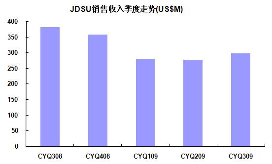 【訊石光通信咨詢網(wǎng)編譯】JDSU近期公布了截至10月3日的2010財(cái)年第一季度財(cái)報(bào),Non-GAAP銷售收入2.986億美元,凈收入900萬(wàn)美元,每股盈利4美分,較分析師預(yù)期的2美分高出2美分;營(yíng)收為2.978億美元,雖然減少21%,但也高于分析師預(yù)期的2.918億美元。受此影響,JDSU股價(jià)當(dāng)日勁揚(yáng)7%。日前,JDSU進(jìn)一步公布10Q財(cái)報(bào),現(xiàn)將其中詳細(xì)分析總結(jié)如下: