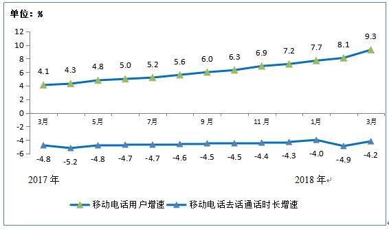 圖7 2018年1-3月移動電話用戶和通話量增幅比較