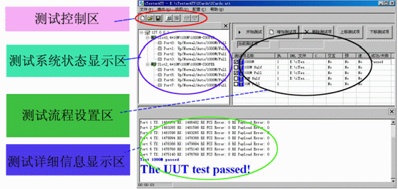 iTesterATT軟件界面分為測試系統(tǒng)控制區(qū)、測試系統(tǒng)狀態(tài)顯示區(qū)、測試流程設(shè)置區(qū)和測試詳細信息顯示區(qū)。如圖2所示。