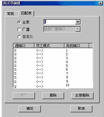 選擇會聚功能。選擇了會聚端口后,ATT將自動配置匹配表(如圖3),用戶也可以對其進行刪減。