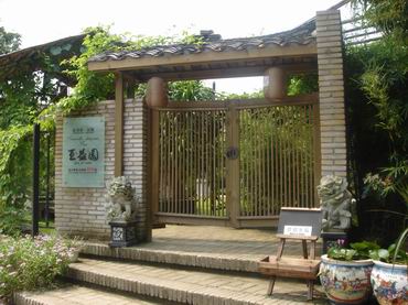 進入花卉世界,長長的街道兩旁滿是花房,緩步走在街道上,享受花草植物散發(fā)著的迷人芳香。街道盡頭就是今天的目的地--亙益園。放眼望去竹籬笆的外墻上爬滿了藤蘿,觸目是滿滿的綠意。推開門扉,才得以窺見里面的世界。碎石鋪就的小路左邊是一排竹篾編成的籬笆,頭頂上亦搭了竹架,全都爬滿了羅漢果(又稱雞蛋果)的綠藤,瓜藤間若隱若現(xiàn)拳頭大的果實。