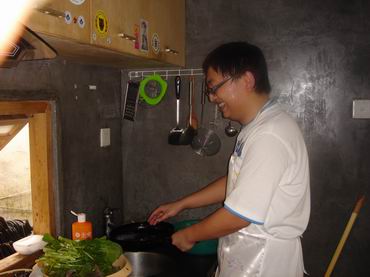 今天的聚餐是每人一道菜,男士女士齊齊上陣,全無君子遠庖廚之慮。人人挽著袖子,系著圍裙,辦公室里的強人一下子變成了叨念油鹽醬醋的巧婦。調蛋聲、切菜聲,一時間鍋碗瓢盆齊響,奏響了一曲獨特的“田園交響樂”。