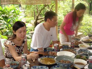 大家的一番努力下,將近二十個菜擺上了桌,有葷有素,涼菜炒菜燉菜湯羹,色香味具全。全部人員落座,先是一杯冰啤慶祝眾人的努力成果,緩和一下做菜時的緊張氣氛,才開始品嘗每個人的得意之作。提箸夾菜送入口中,每人臉上都是期待?!昂贸?!”“這個不錯,誰做的?”......贊譽之聲不斷,期待變成了滿足。