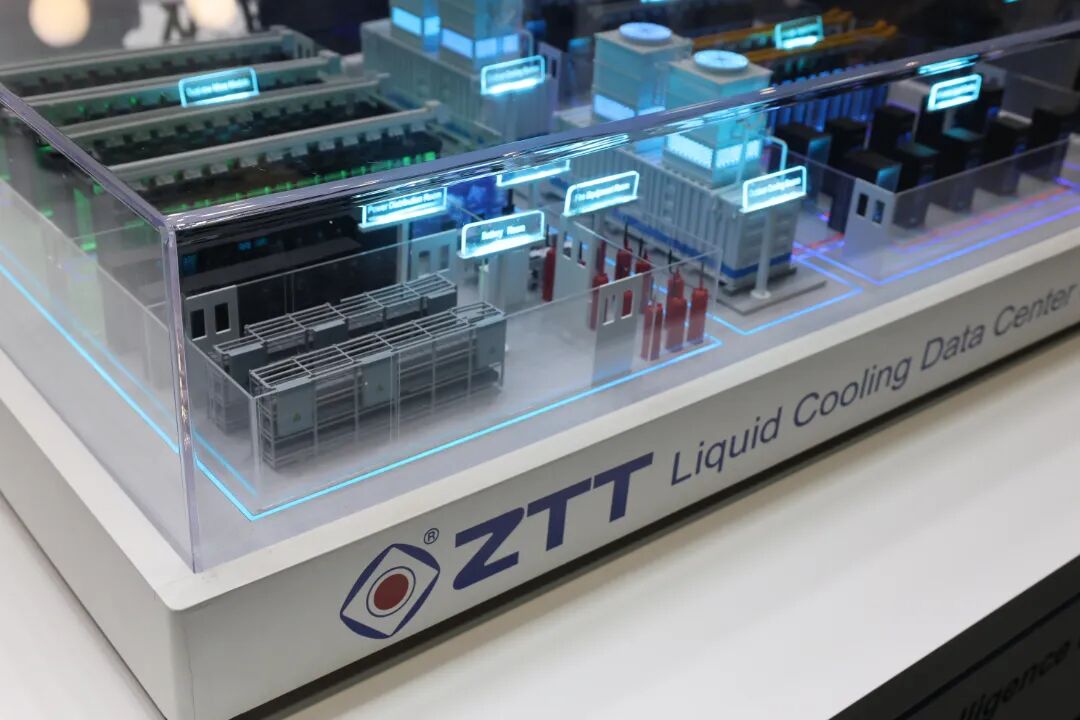 針對(duì)AI算力高密度、高能耗的挑戰(zhàn),中天科技通過(guò)沙盤(pán)模型,呈現(xiàn)了從供電到制冷的全棧解決方案。通過(guò)高度集成的智能電力模塊及液冷解決方案,公司有效提升能源利用效率,助力數(shù)據(jù)中心實(shí)現(xiàn)更低PUE水平,滿(mǎn)足高密度算力場(chǎng)景下的散熱與穩(wěn)定性需求。