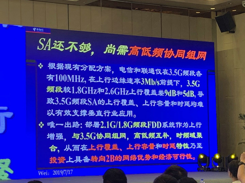 “唯一的出路是部署2.1G/1.8G頻段FDD系統(tǒng)作為上行增強(qiáng),與3.5G協(xié)同組網(wǎng),高低頻互補(bǔ),時(shí)頻域聚合,從而在上行覆蓋、上行容量和時(shí)延特性乃至投資上具備轉(zhuǎn)向2B的網(wǎng)絡(luò)優(yōu)勢(shì)和經(jīng)濟(jì)可行性。” 韋樂(lè)平表示。