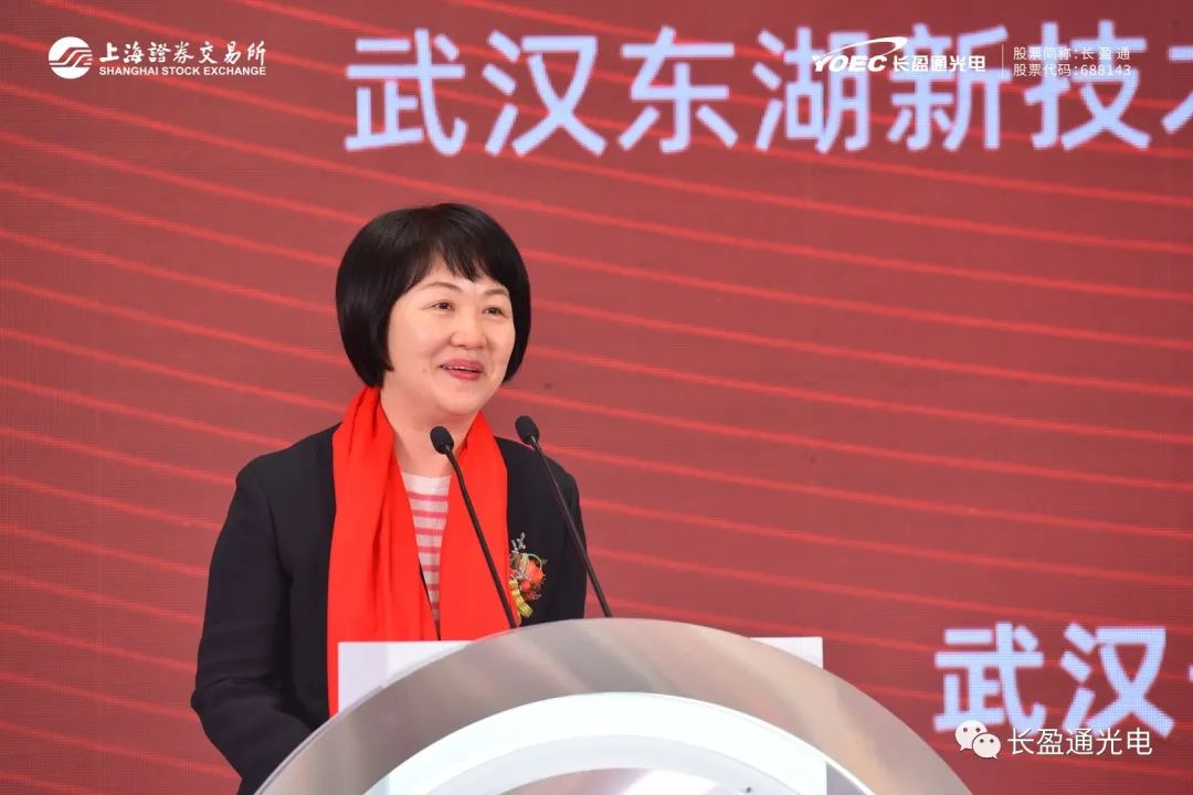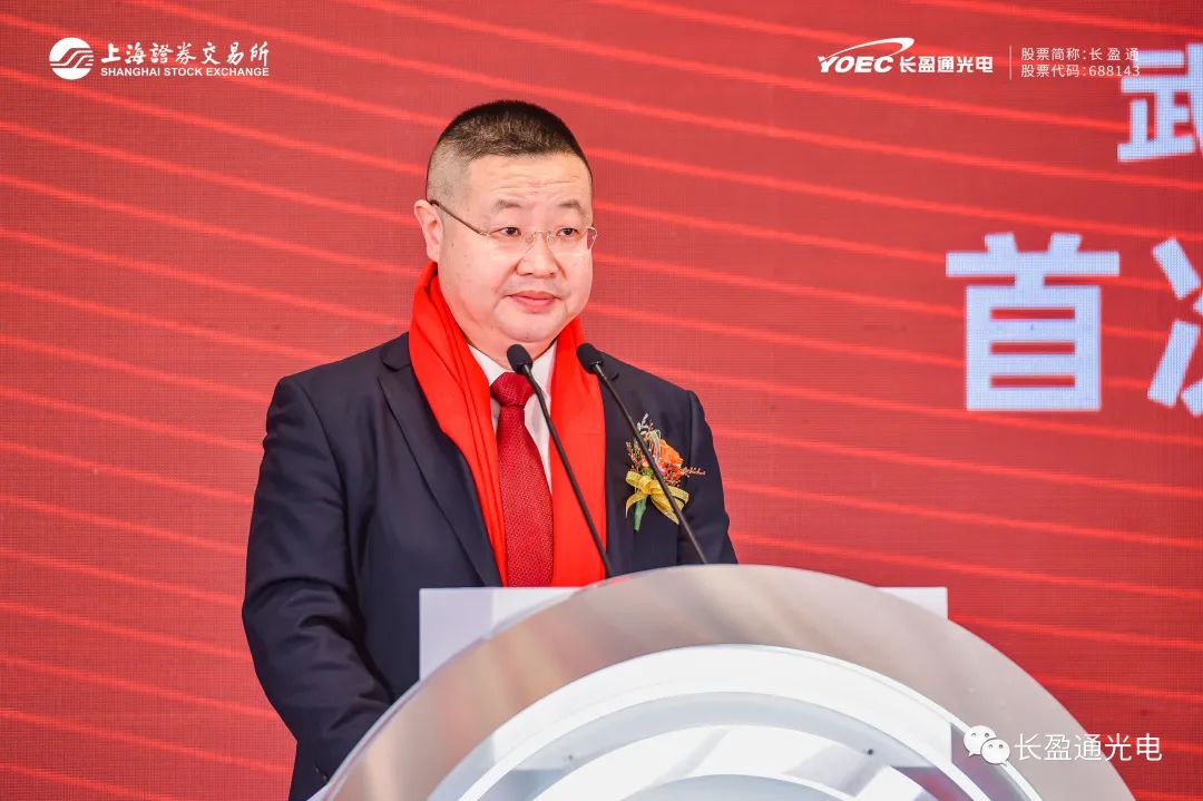 出席長盈通上市儀式現(xiàn)場嘉賓有:湖北省地方金融監(jiān)管局黨組成員、副局長、省上市辦主任嚴宓,中共湖北省委軍民融合發(fā)展委員會辦公室副主任周峰,湖北省機關事務管理局副局長戴峰,武漢東湖高新區(qū)黨工委委員、管委會副主任李首文,省市區(qū)、交易所其他相關領導,股東方代表、中介機構代表、客戶代表以及在長盈通上市過程中給予幫助支持的各界同仁,大家共同見證長盈通上市的精彩時刻。李首文副主任、皮亞斌董事長在上市儀式發(fā)表重要致辭,中信建投證券股份有限公司總經(jīng)理黨委副書記李格平進行視頻致辭。
