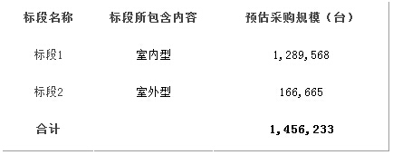 本次中國(guó)移動(dòng)通信有限公司2015年CPE集中采購(gòu)的產(chǎn)品分為CPE室內(nèi)型、CPE室外型兩種產(chǎn)品。本次比選共分2個(gè)標(biāo)段,每種產(chǎn)品1個(gè)標(biāo)段。具體標(biāo)段1室內(nèi)型128.9萬臺(tái)、標(biāo)段2室外型16.67萬臺(tái),總計(jì)145.6萬臺(tái),具體如下圖。