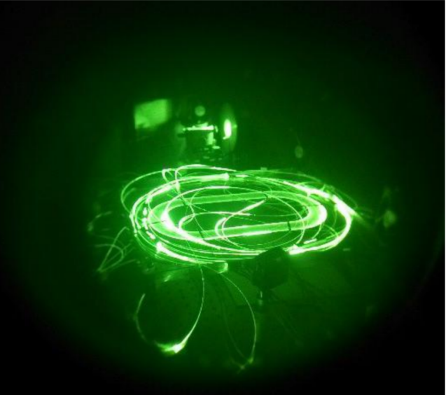 下圖是紅外相機(jī)下的光纖激光器。從圖中可以看出光纖激光器每一部分都有輻射模式射出光纖,而且彎曲的位置更加明亮。關(guān)鍵位置的熔接點(diǎn)(泵浦進(jìn)摻雜光纖的熔接點(diǎn))熔接質(zhì)量影響激光器的輸出功率、整體溫度和使用壽命。