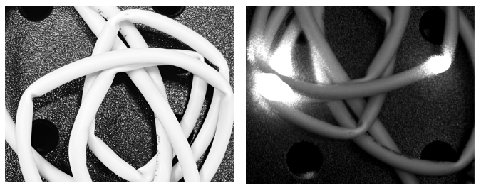 光纖是現(xiàn)代通信網(wǎng)絡(luò)的關(guān)鍵介質(zhì),其可靠性直接決定著整個(gè)網(wǎng)絡(luò)的穩(wěn)定性。光纖斷裂會(huì)導(dǎo)致信號(hào)中斷,影響通信質(zhì)量。因此,在光纖通信和光纖激光器生產(chǎn)制造過程中,對(duì)光纖進(jìn)行及時(shí)全面的檢測至關(guān)重要。利用短波紅外相機(jī)可以有效且直觀地觀察光纖斷點(diǎn)問題,并準(zhǔn)確確定故障位置,有助于確保光纖系統(tǒng)的整體性能與質(zhì)量。此外,由于短波紅外成像原理更接近可見光,在成像分辨率和細(xì)節(jié)方面具備顯著優(yōu)勢。