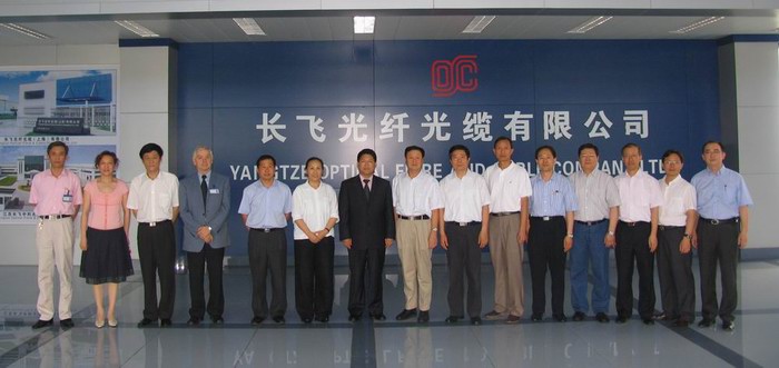 王總充分肯定了長飛在技術(shù)創(chuàng)新、生產(chǎn)規(guī)模和光纖品種發(fā)展上所取得的成績,并希望長飛公司要向用戶負責、向股東負責,再接再勵為中國和全球光纖通信發(fā)展作出更大貢獻。 視察完畢后,王曉初總經(jīng)理高興地與長飛公司領(lǐng)導合影留念。