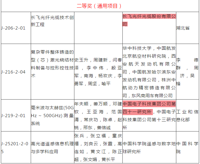 其中訊石會員中國電子科技集團公司第四十一研究所參與完成的“地質(zhì)工程分布式光纖監(jiān)測關鍵技術及其應用”榮獲2018年度國家科學技術進步獎一等獎,中國電子科技集團公司第四十一研究所參與完成的“毫米波與太赫茲(50GHz~500GHz)測量系統(tǒng)”榮獲2018年度國家科學技術進步獎二等獎,長飛光纖光纜股份有限公司牽頭完成的“長飛光纖光纜技術創(chuàng)新工程”榮獲2018年度國家科學技術進步獎二等獎。