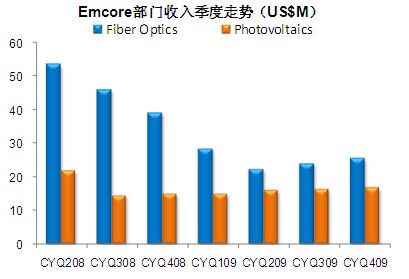 【訊石光通訊咨詢網編譯】Emcore公司昨天公布截至2009年12月31日第一財季財報,本季度營業(yè)收入為4240萬美元,較前一季度增加190萬美元,增幅為5%。
