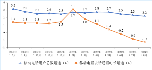 圖8 移動(dòng)電話用戶增速和通話時(shí)長(zhǎng)增速情況