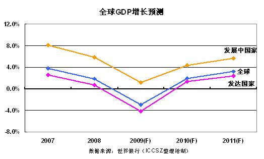 全球GDP增長預計在2010年將回升至2%,2011年達到3.2%。發(fā)展中國家的增長預計將會更高,2010年達到4.4%,2011年5.7%,盡管與發(fā)生目前危機前的強勁表現相比依舊乏力。