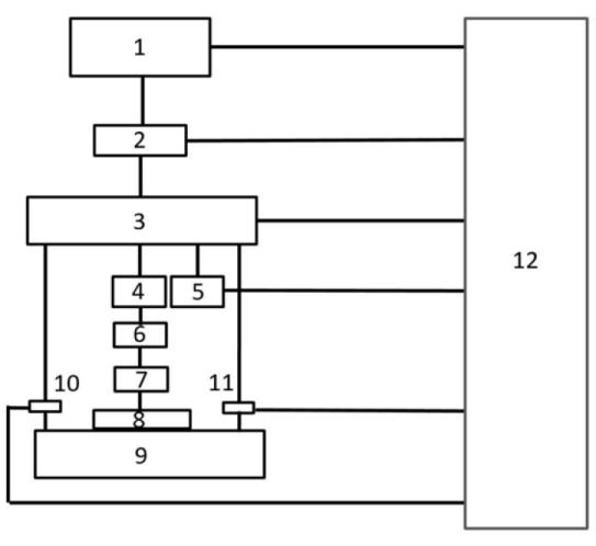 圖1是該專利提出的一種所述光器件連接裝置的結(jié)構(gòu)示意圖,主要包括準(zhǔn)直器對準(zhǔn)系統(tǒng)、耦合角度監(jiān)測系統(tǒng)和壓力實時監(jiān)測系統(tǒng)。準(zhǔn)直器對準(zhǔn)系統(tǒng)實現(xiàn)準(zhǔn)直器和光模塊盒子的孔的初始對準(zhǔn),維持壓入過程和最終耦合后準(zhǔn)直器的角度;耦合角度監(jiān)測系統(tǒng)監(jiān)測過盈配合壓入過程中準(zhǔn)直器的角度;壓力實時監(jiān)測系統(tǒng)實時檢測壓入過程中壓力與過盈距離之間的關(guān)系以及壓入過程中準(zhǔn)直器承受壓力大小。