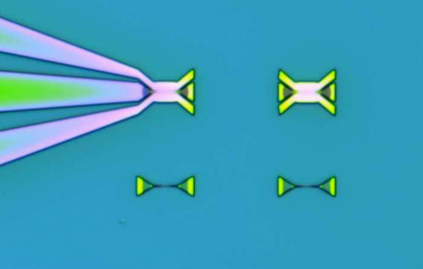 左上圖:帶電接觸的功能調(diào)制器;右圖:無電接觸的測試調(diào)制器;下圖:測試元件。