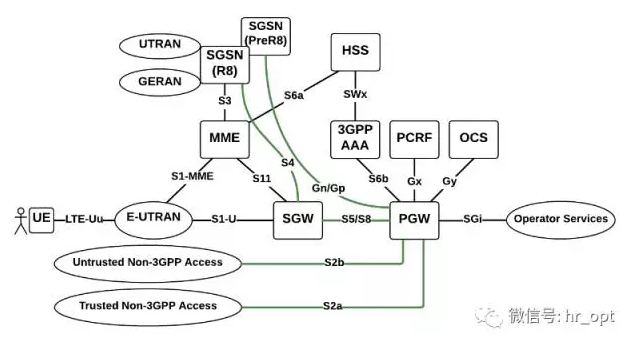 隨著VoLTE和VoWiFi的出現(xiàn),LTE/EPC又引入了S2a、S2b和S2c接口,這些接口將核心網(wǎng)的控制范圍延伸到了非3GPP網(wǎng)絡(luò),即可信Non-3GPP接入(Non-3GPP Trusted Access)和非可信Non-3GPP接入(Non-3GPP untrusted Access)連接到3GPP網(wǎng)關(guān)PGW。