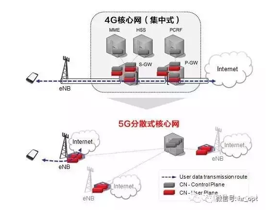 ▲4G集中式核心網(wǎng)與5G分布式核心網(wǎng)