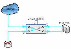 5.節(jié)點掉電業(yè)務保護方案:每個節(jié)點在無源輸入輸出端并用一只2×2非鎖定式光開關,保護原理圖如下: